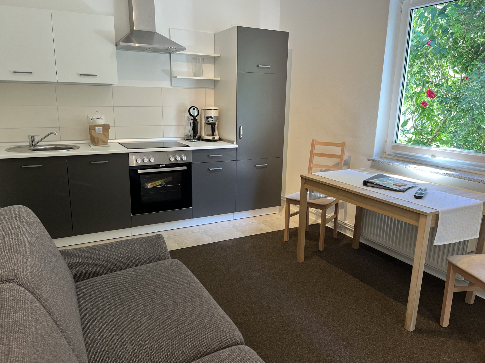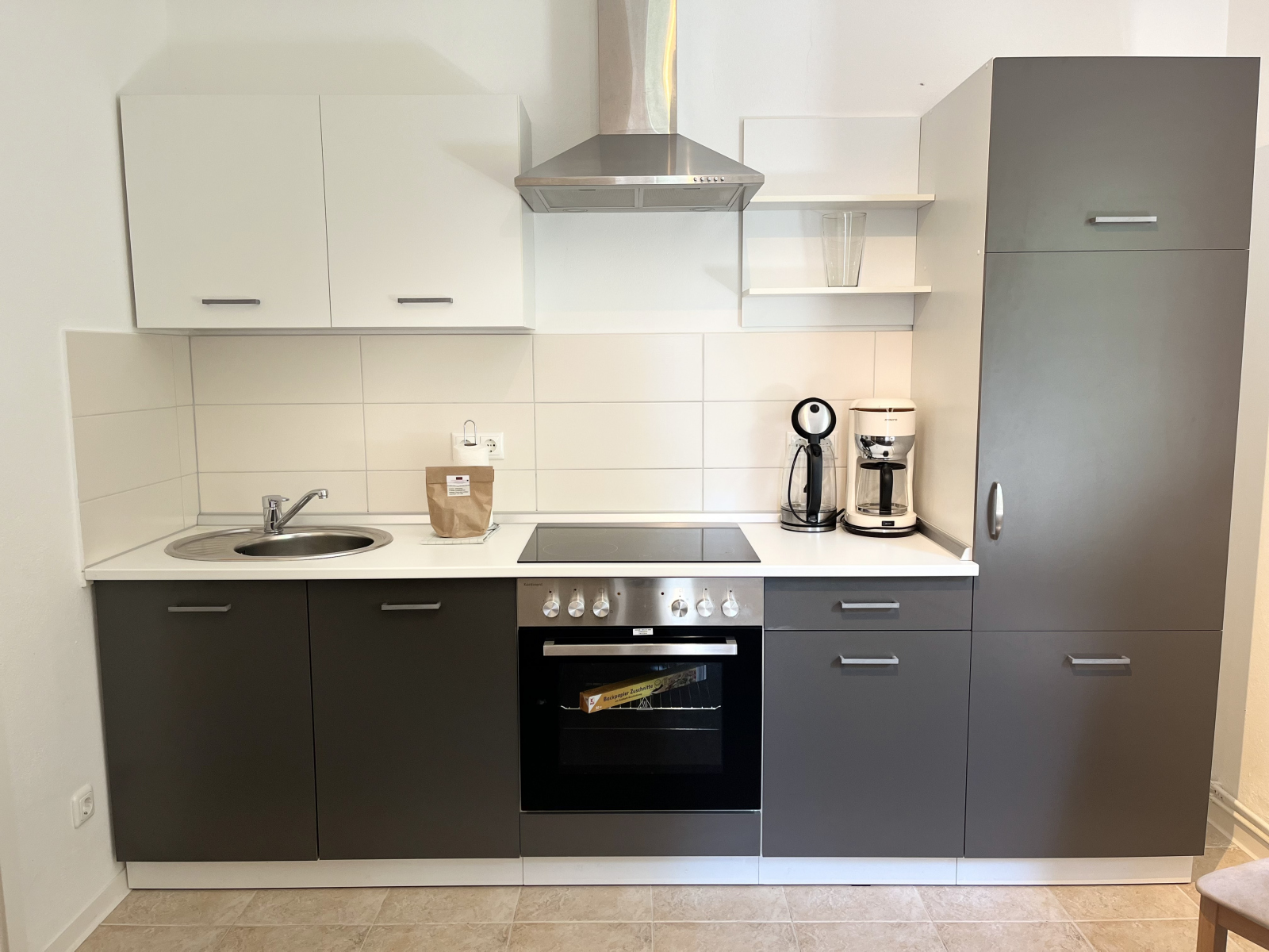 | Küche | 4 Kochplatten, Kühlschrank mit Gefrierfach, Toaster, Kaffemaschine, Wasserkocher, Küchenausstattung, Geschirr, Besteck, Geschirrtuch, Schwamm, Spülmittel, Zewa |