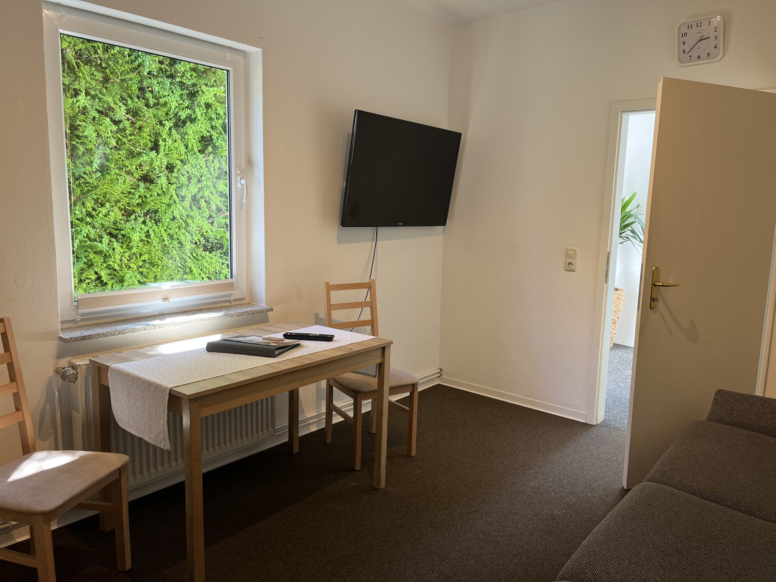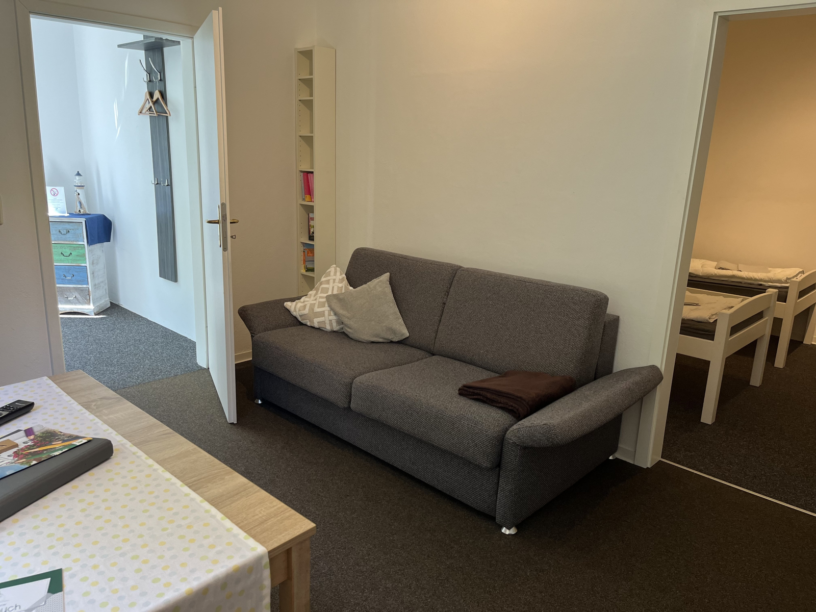 | Wohnzimmer | Couch mit Schlaffunktion, TV (DVD und Radio bei Bedarf) |