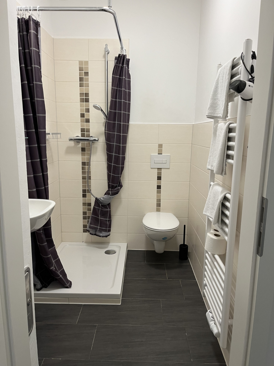 | Badezimmer | Dusche, WC, Waschbecken, Dusch- und Handtücher, Badvorleger, Föhn |