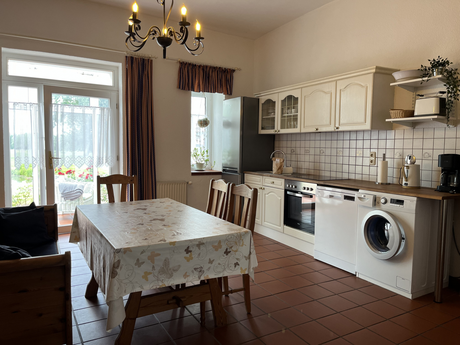 • Eine komplette Küche mit Spül- und Waschmaschine, Kaffeemaschine und Wasserkocher,