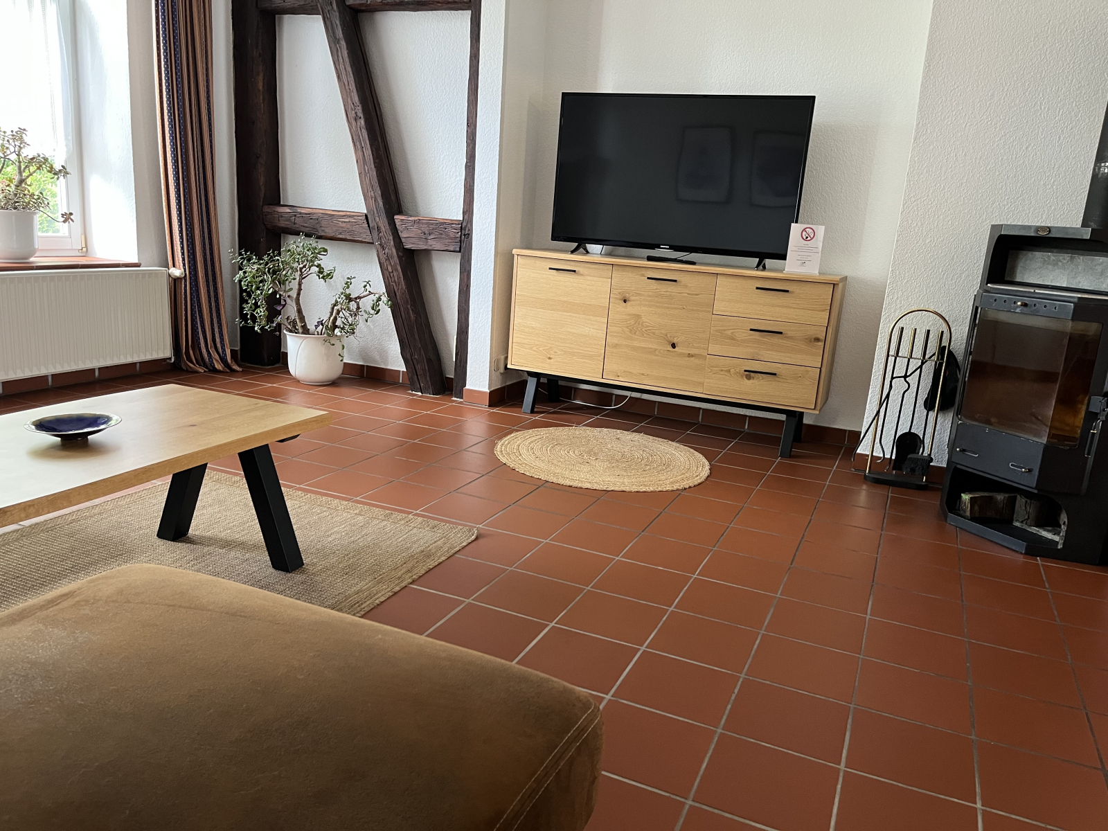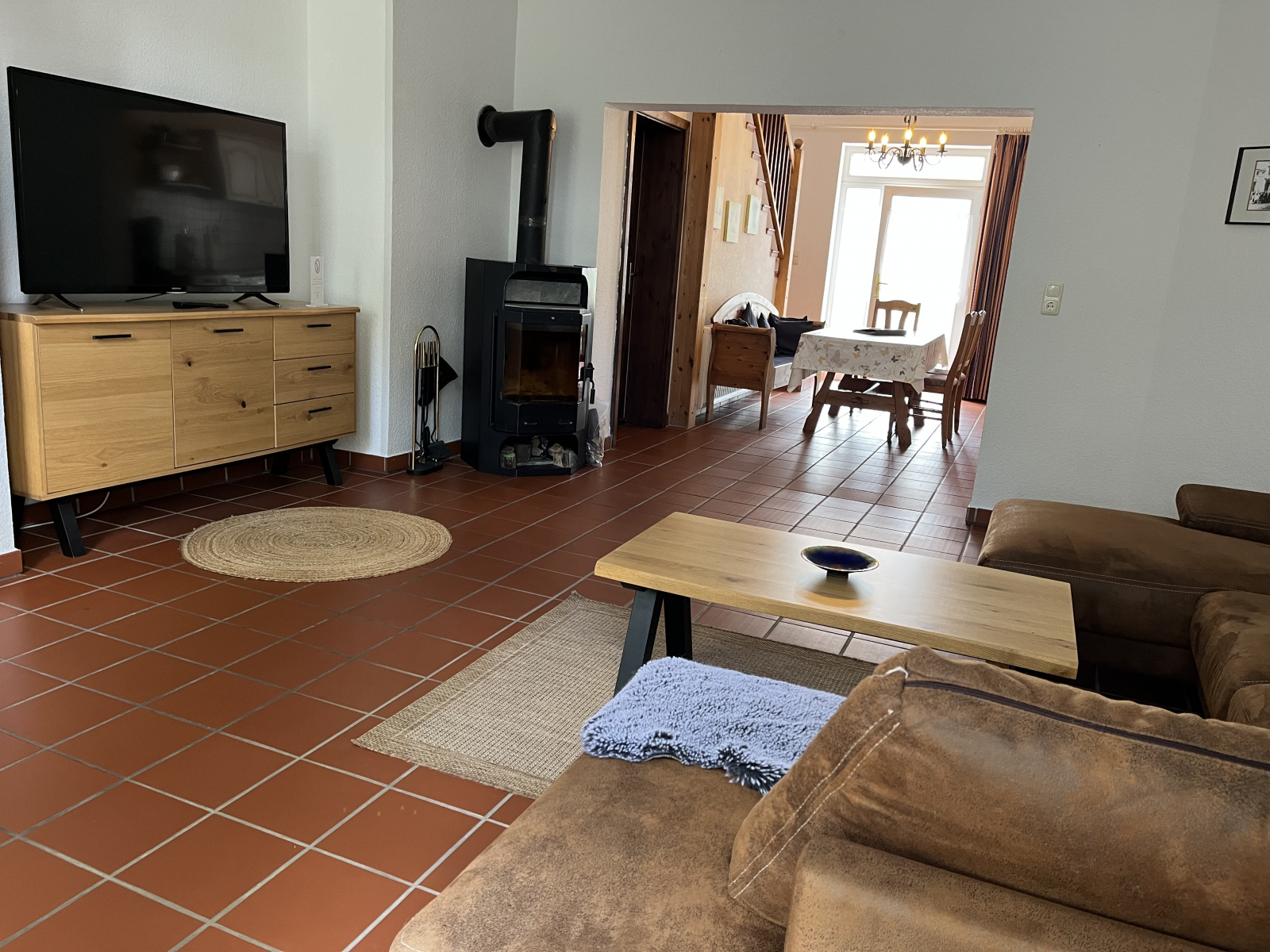 • Ein gemütliches Wohnzimmer mit Sat-TV und Kaminofen,