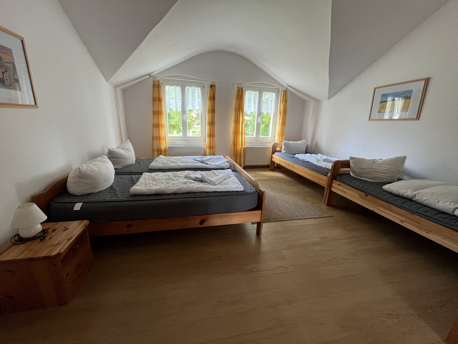 • ein zweites Schlafzimmer mit Doppelbett und zwei Einzelbetten.